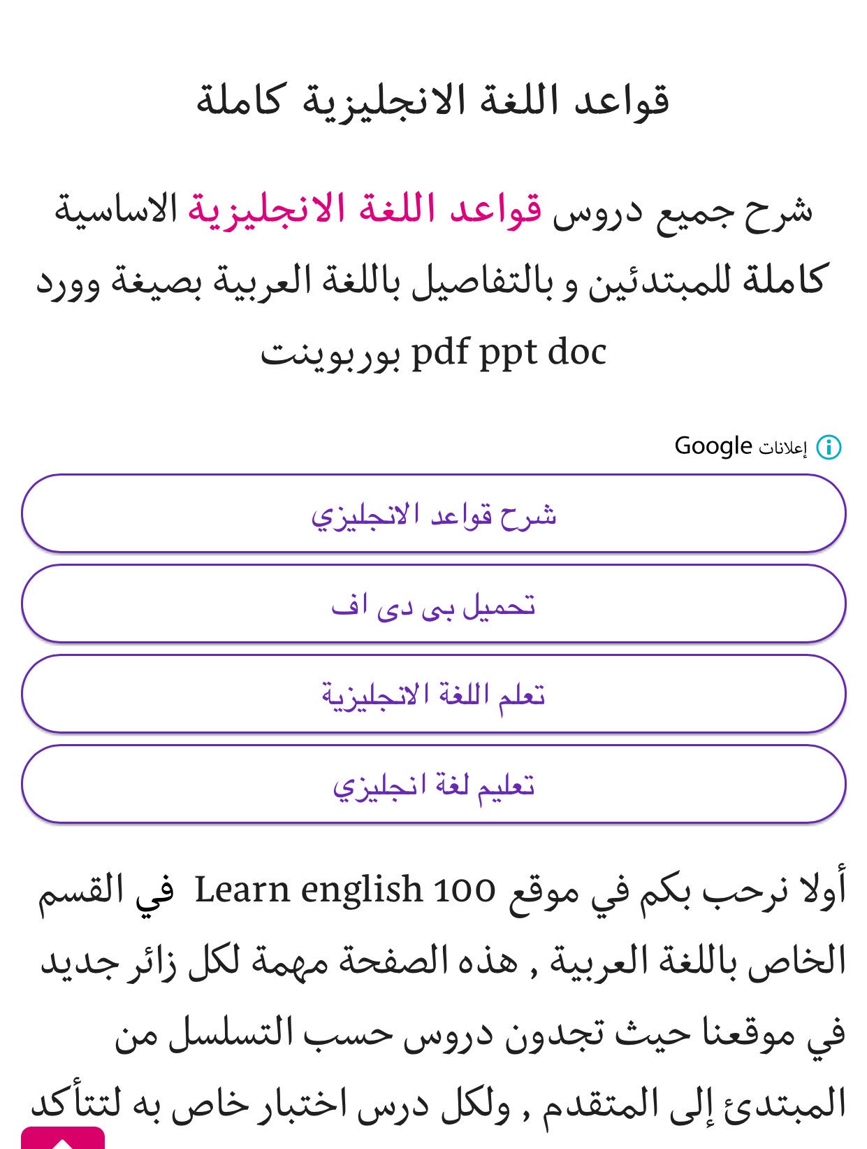 قواعد اللغة الانجليزية كاملة بالتفصيل بالعربية English 100