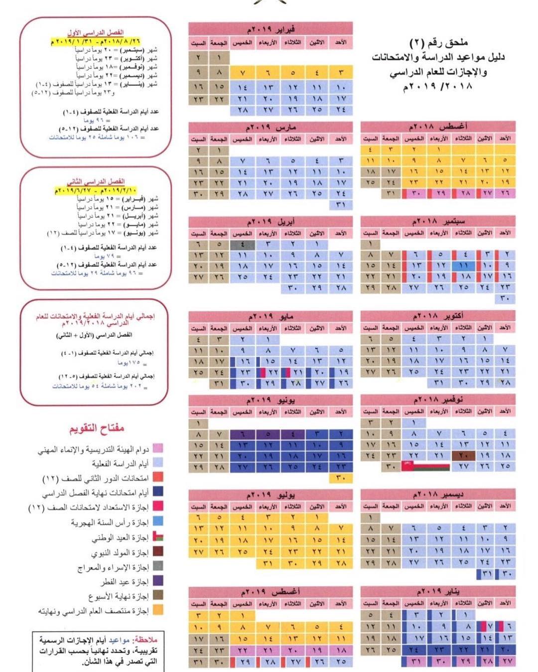 مواعيد الاختبارات والإجازات 2019 2020 أخبار الدوام الفصل الأول المناهج الع مانية